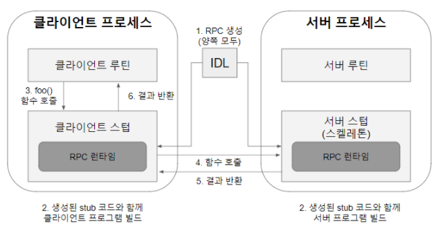 - Client와 Server는 각각 일반 메소드를 호출하는 것처럼 원격지의 프로시저를 호출할 수 있다.