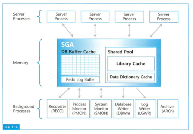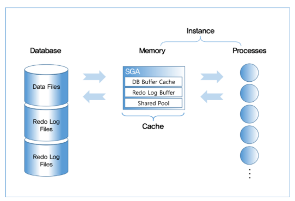 그리고 SGA 공유 메모리 영역과 프로세스 집합을 합쳐서 '인스턴스(Instance)' 라고 부른다!